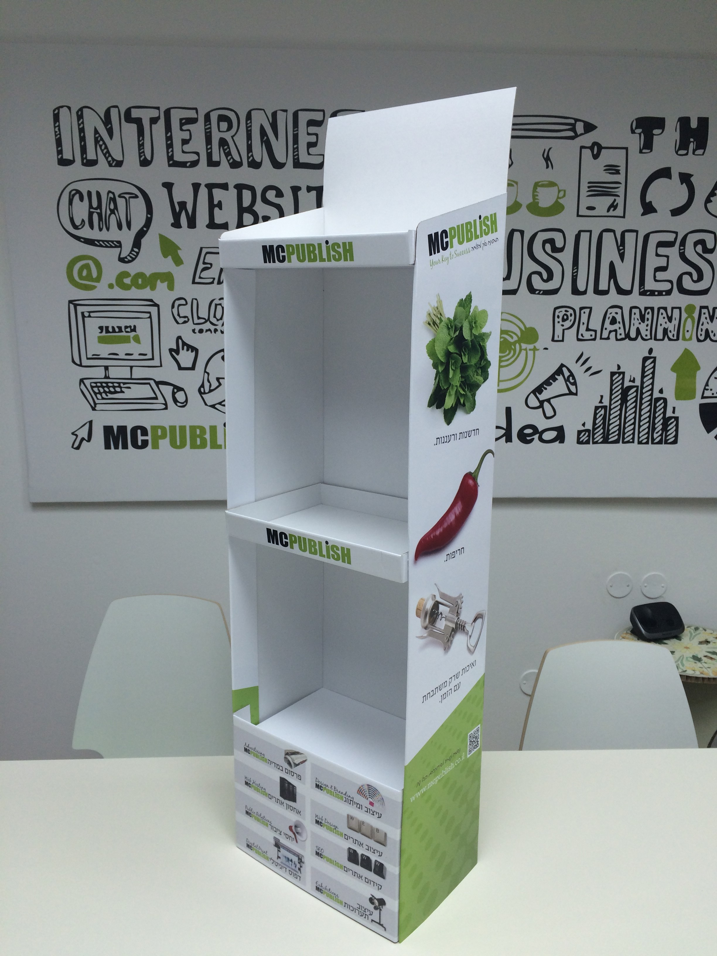 אם סי פרינט מומחים בייצור סטנדים מקרטון. ניתן לייצר סטנדים בהתאמה אישית כולל עיצוב, הפקה וייצור. בית הדפוס עובד עם קרטון כוורת או איפלוט – סוגי הקרטון הקשיחים, העמידים ביותר והמקובלים לייצור ריהוט מעץ.