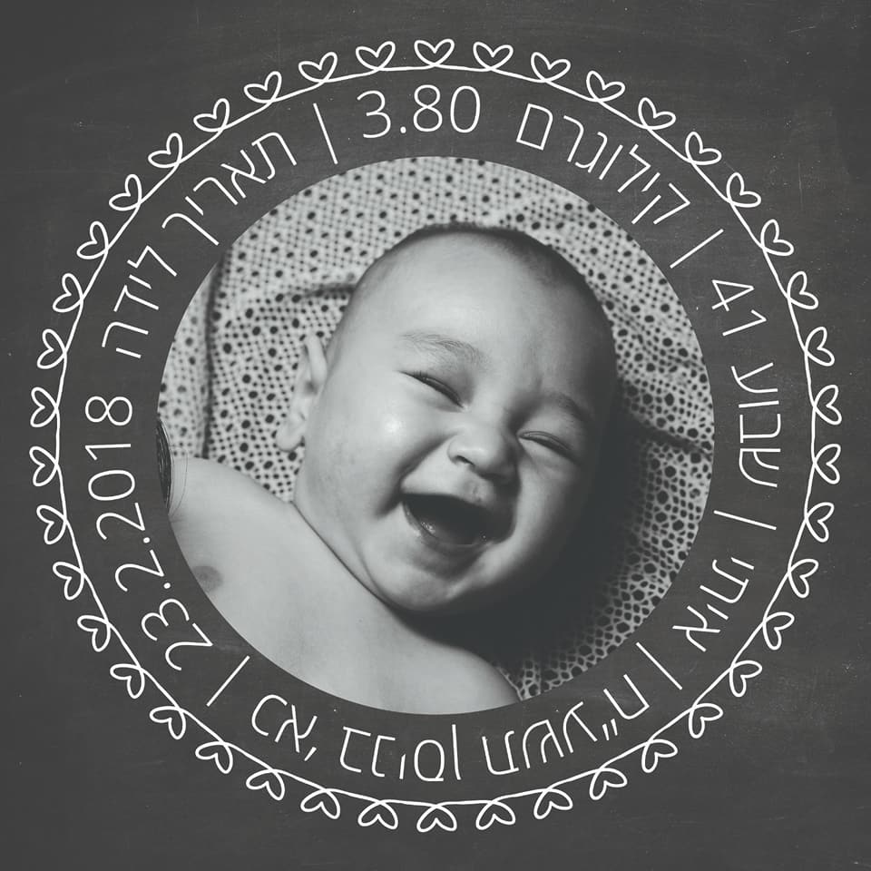 תעודת לידה מעוצבות, עם שם, משקל, שבוע לידה, תאריך לידה עברי ולועזי ותמונה של הרך הנולד בעיצובים מדהימים.